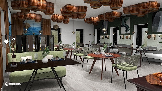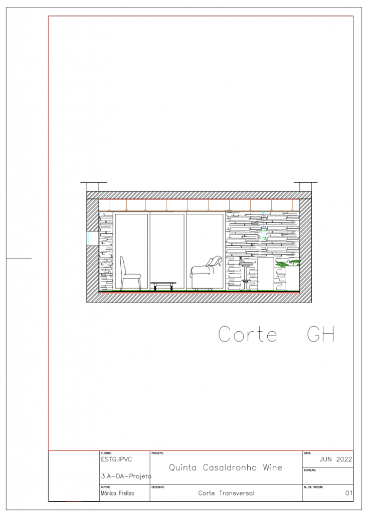 All the decoration of the space will be turned to green, brown and neutral tones to follow the vintage theme and the use of wood materials to remind us of the vineyards as well as keeping in the space the Portuguese stone, the schist. This space fits well with the desired theme and transmits comfort to those who will use it.