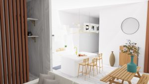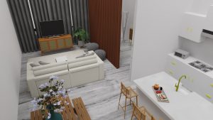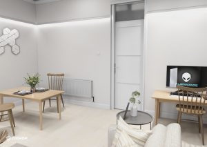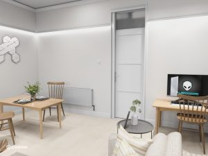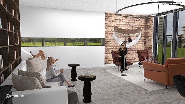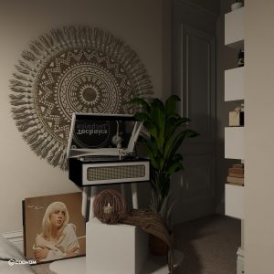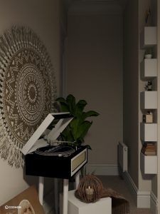 Finally, a leisure area so that it can fill all the decoration of the space will be turned to a Scandinavian style, with white, beige and brown tones, and the use of wood materials to refer to a natural look of the objects.